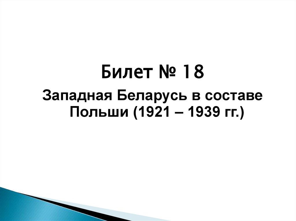 Западная Беларусь в составе Польши (1921 – 1939 гг.). Билет № 18