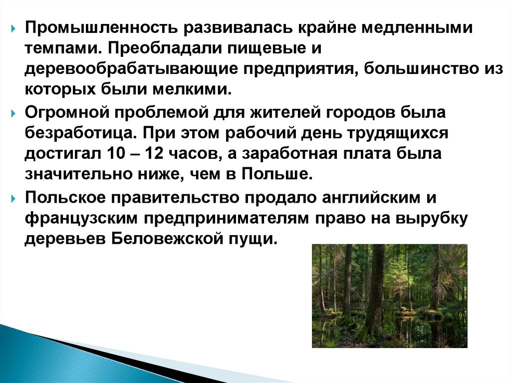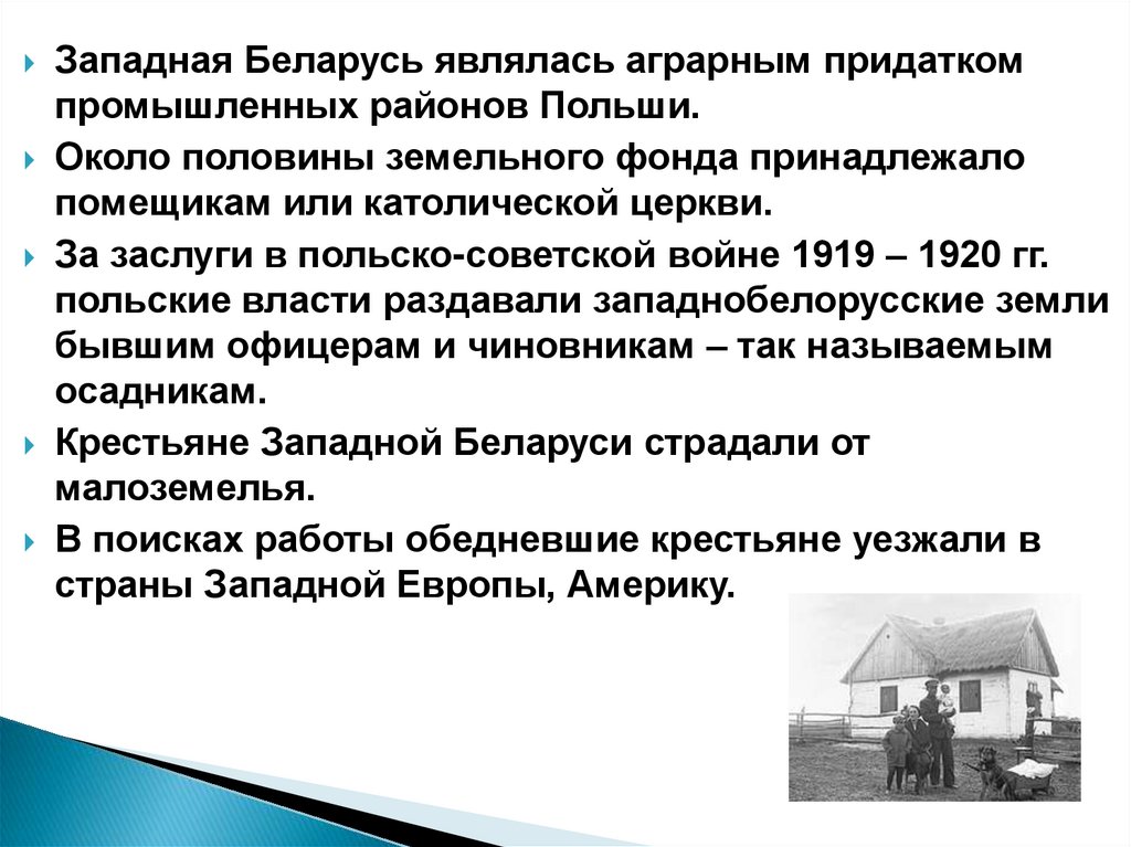 Западная Беларусь являлась аграрным придаткомпромышленных районов Польши.