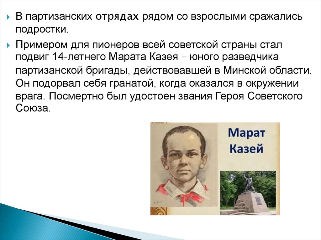 В партизанских отрядах рядом со взрослыми сражалисьподростки.