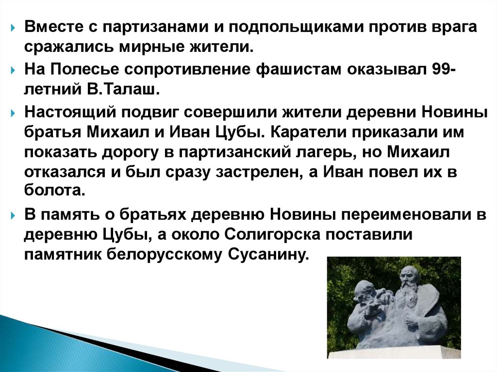 На Полесье сопротивление фашистам оказывал 99летний В.Талаш.