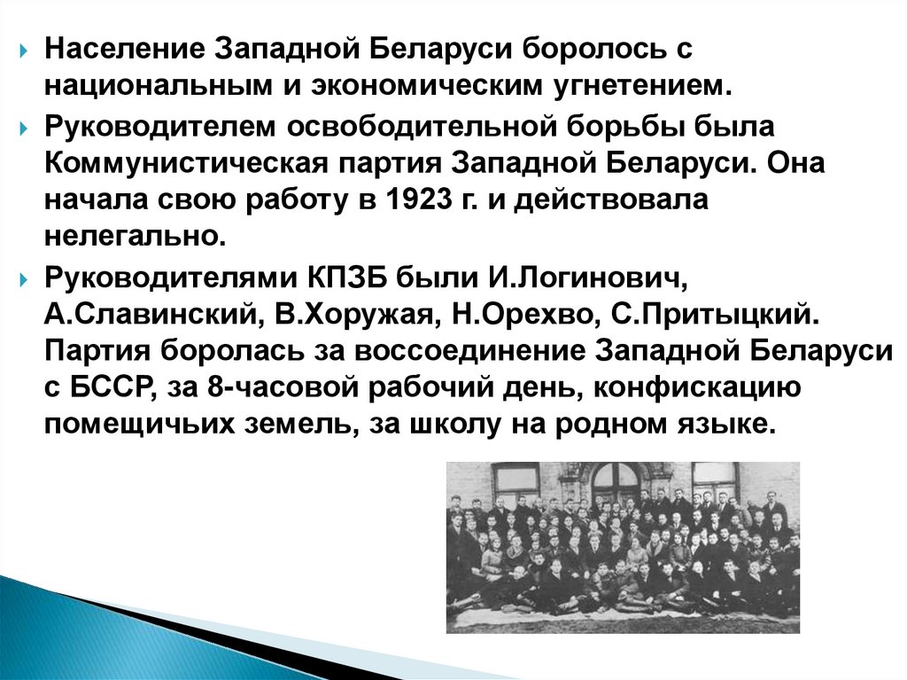 Население Западной Беларуси боролось снациональным и экономическим угнетением.