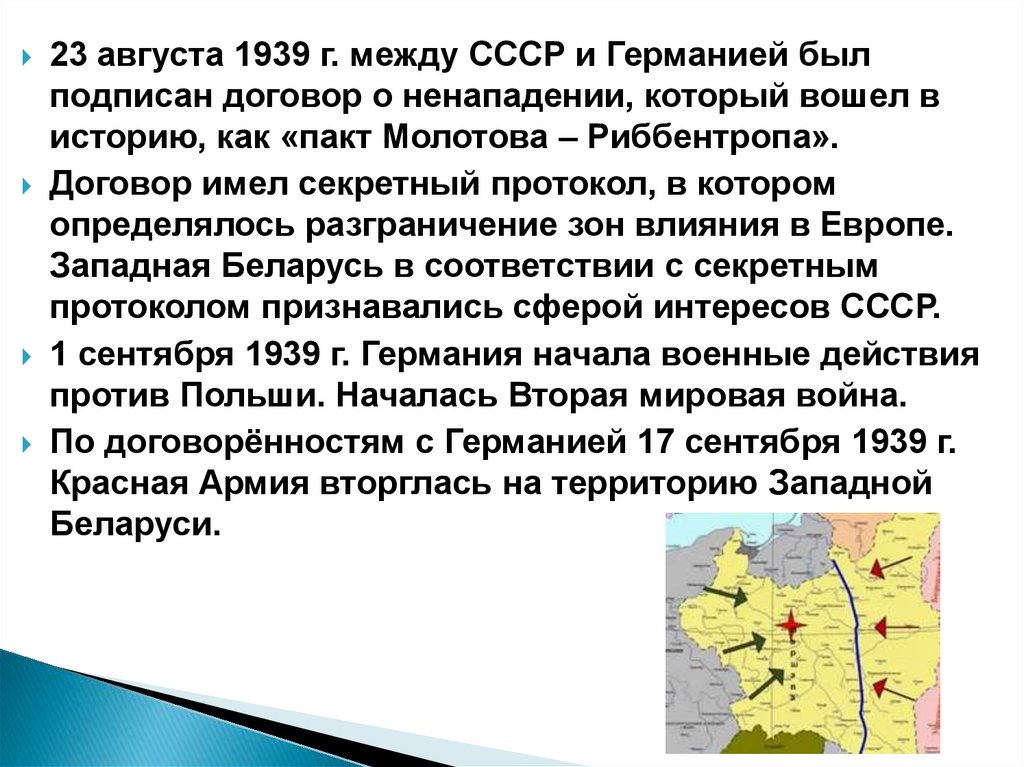 23 августа 1939 г. между СССР и Германией былподписан договор о ненападении, который вошел в