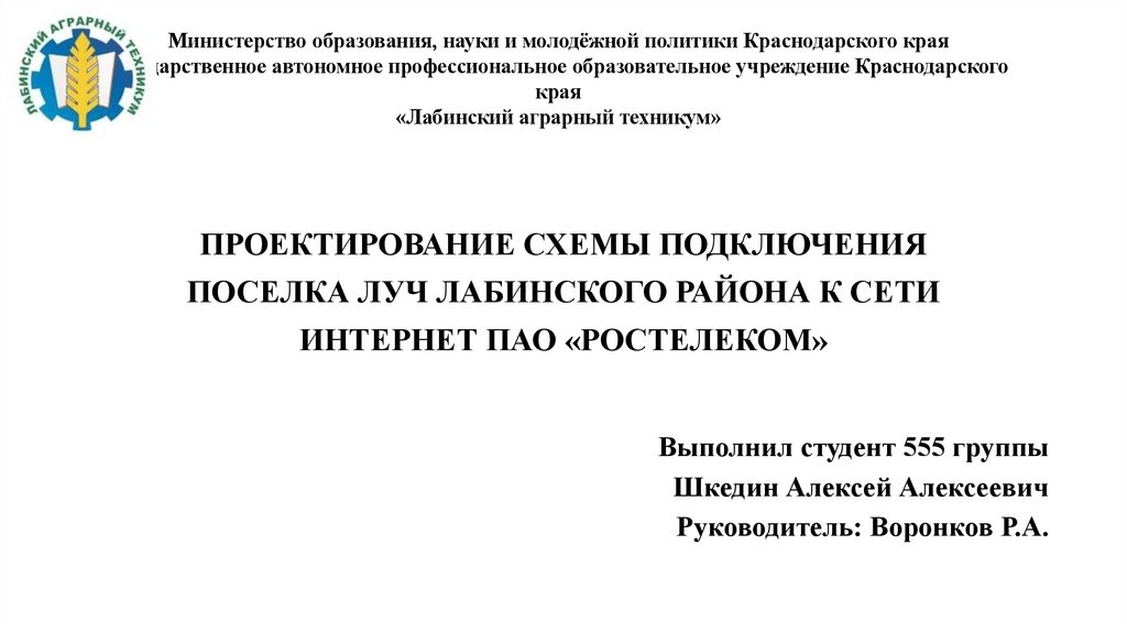 Проектирование схемы подключения поселка Луч Лабинского района к сети интернет ПАО «Ростелеком»)