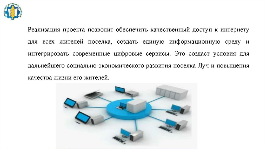 Реализация проекта позволит обеспечить качественный доступ к интернетудля всех жителей поселка, создать единую информационную среду и