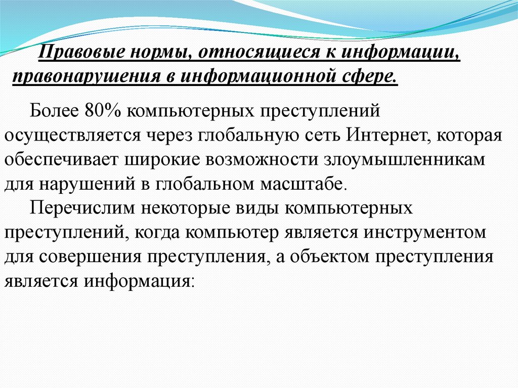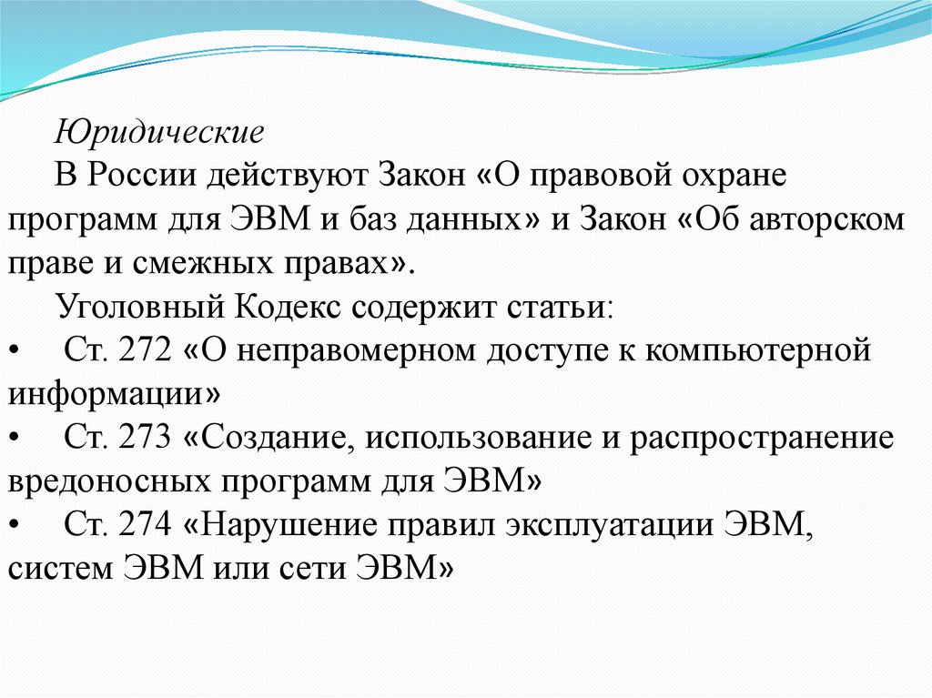 • Ст. 272 «О неправомерном доступе к компьютерной