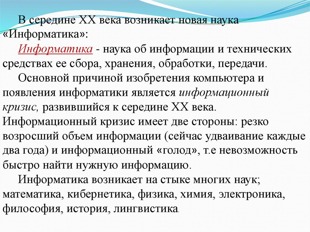 Как называется наука об информации, технических средствах ее сбора, хранения,