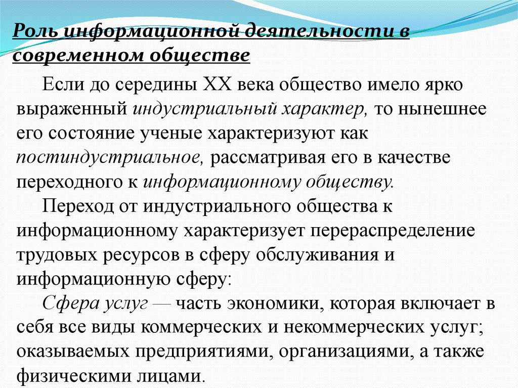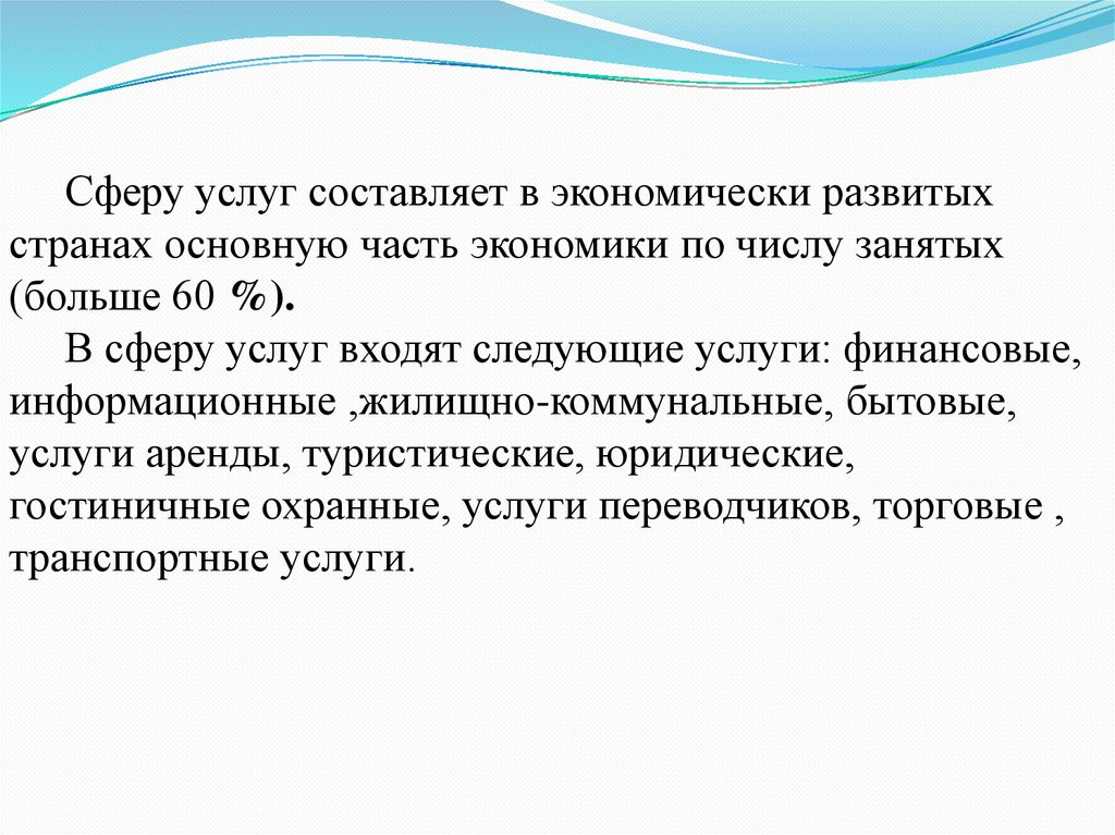 Сферу услуг составляет в экономически развитыхстранах основную часть экономики по числу занятых