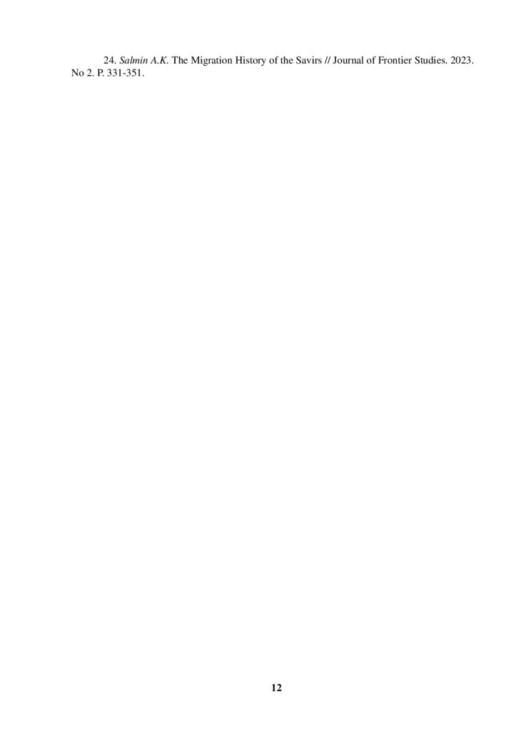 24. Salmin A.K. The Migration History of the Savirs // Journal of Frontier Studies. 2023.No 2. P. 331-351.