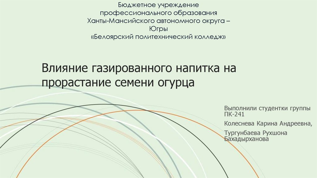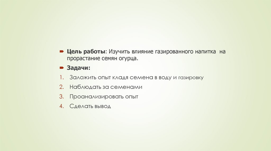 Цель работы: Изучить влияние газированного напитка напрорастание семян огурца.