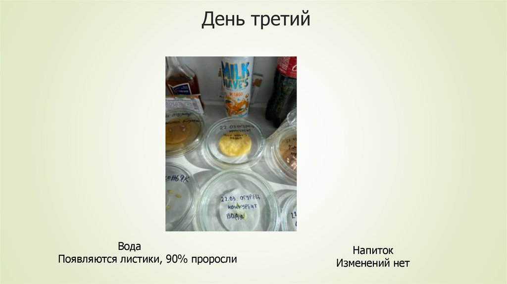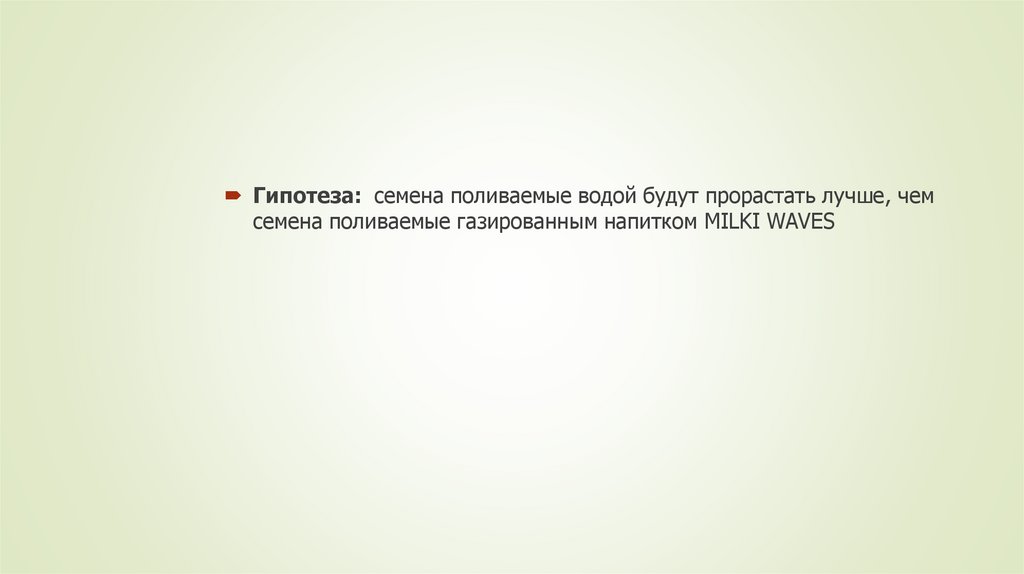 Гипотеза: семена поливаемые водой будут прорастать лучше, чемсемена поливаемые газированным напитком MILKI WAVES