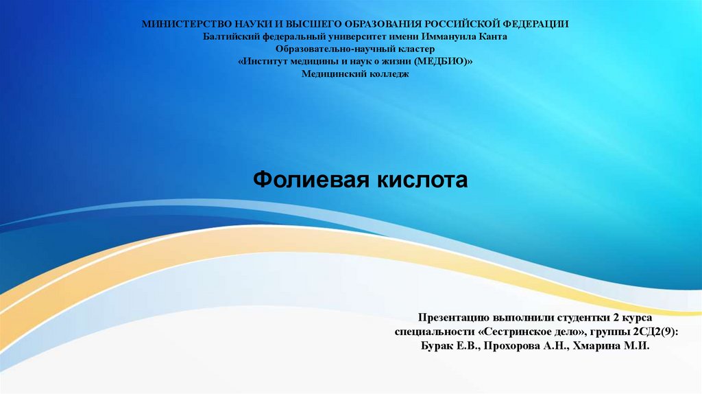 1. МИНИСТЕРСТВО НАУКИ И ВЫСШЕГО ОБРАЗОВАНИЯ РОССИЙСКОЙ ФЕДЕРАЦИИ Балтийский федеральный университет имени Иммануила Канта