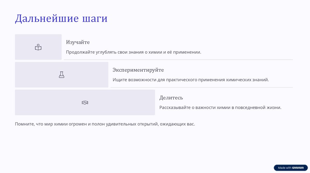 Помните, что мир химии огромен и полон удивительных открытий, ожидающих вас.