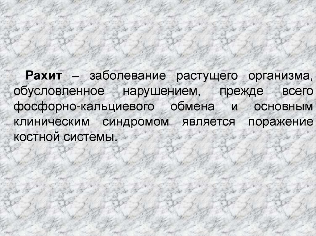 Рахит – заболевание растущего организма,обусловленное нарушением, прежде всего