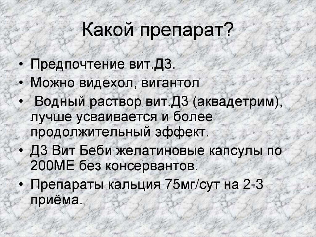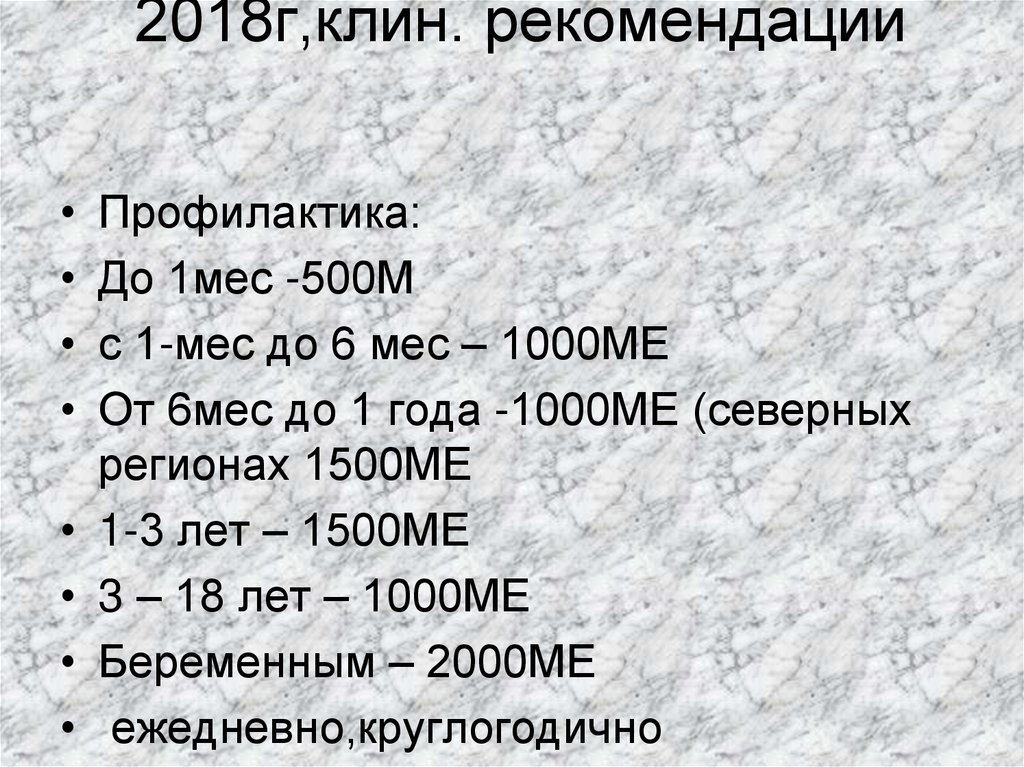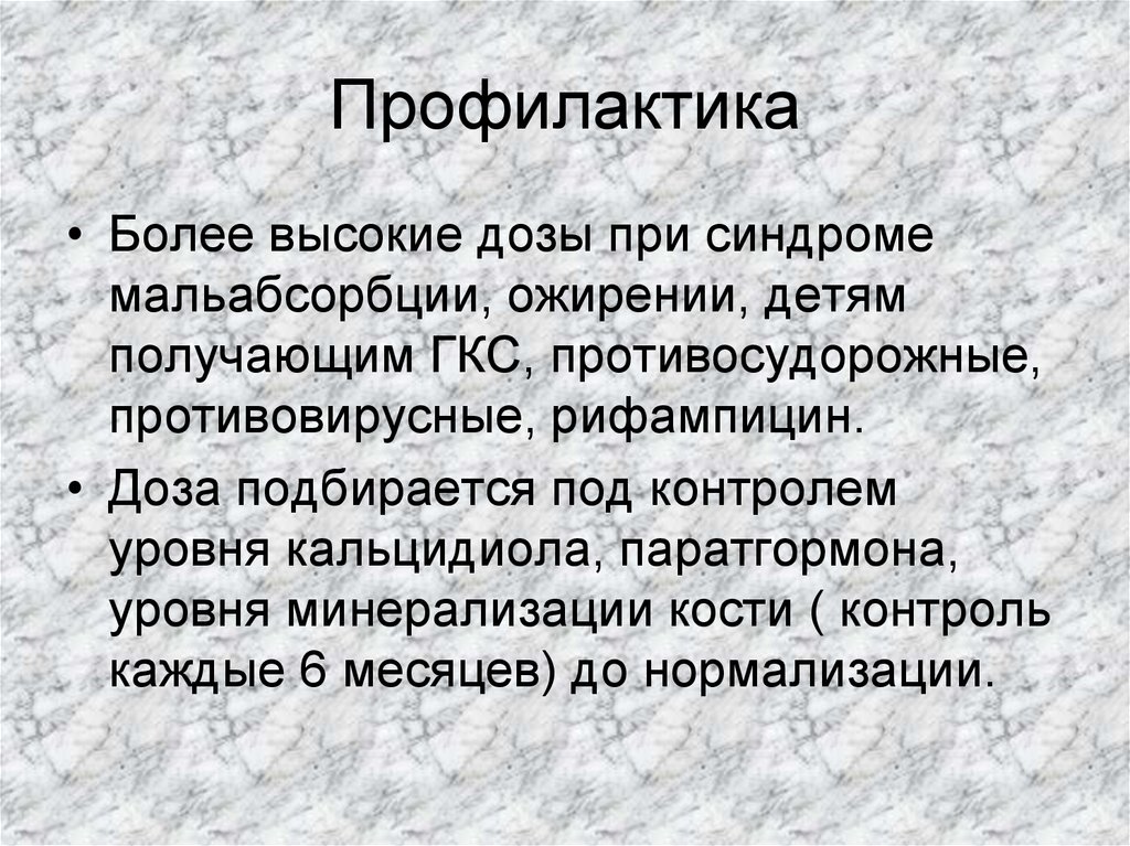 • При снижении кальцидиола менее 50нмоль/л у детей