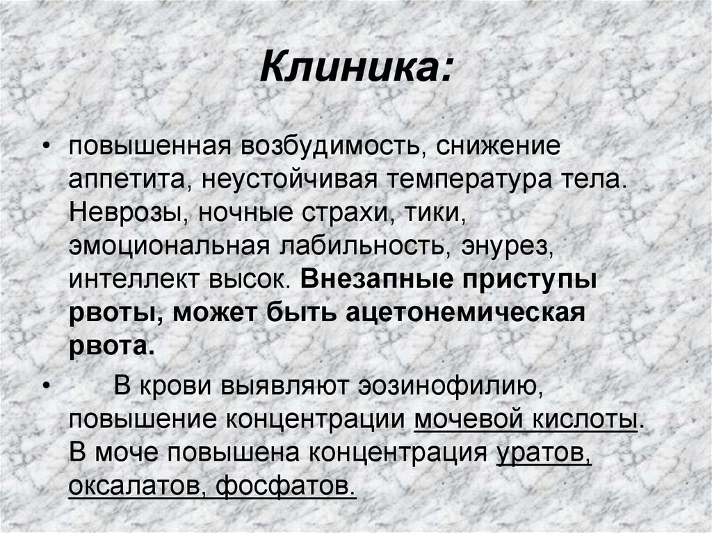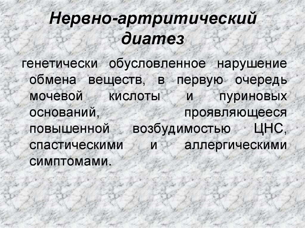 Детей с нервно-артритическим диатезом не следует кормитьнасильно, но надо избегать длительных перерывов в еде.