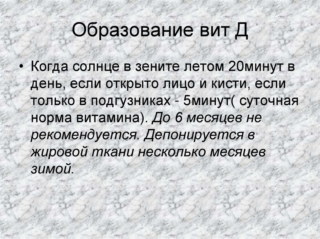 • Когда солнце в зените летом 20минут вдень, если открыто лицо и кисти, если