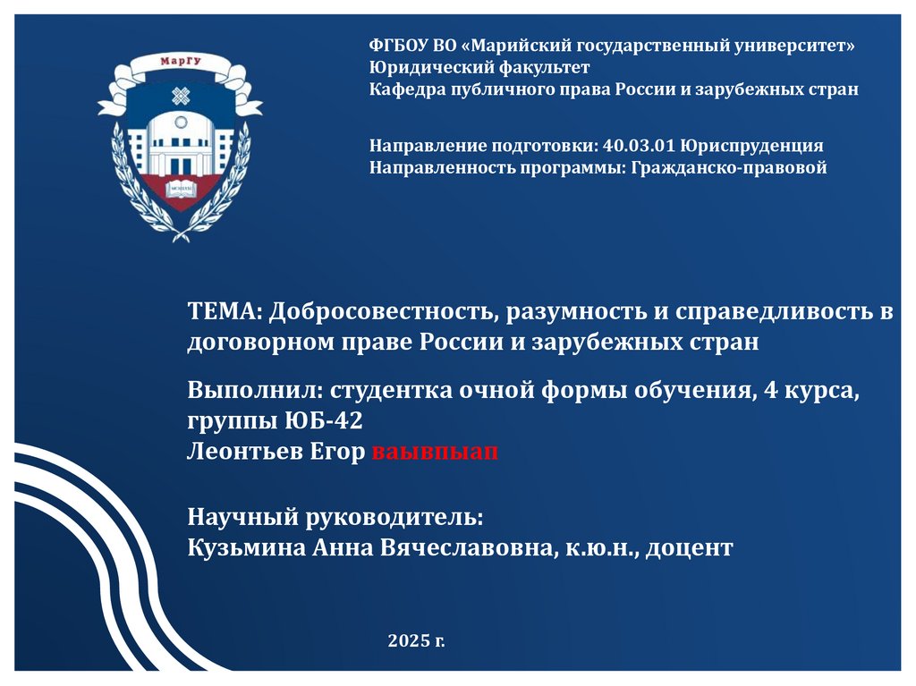 ФГБОУ ВО «Марийский государственный университет»Юридический факультет