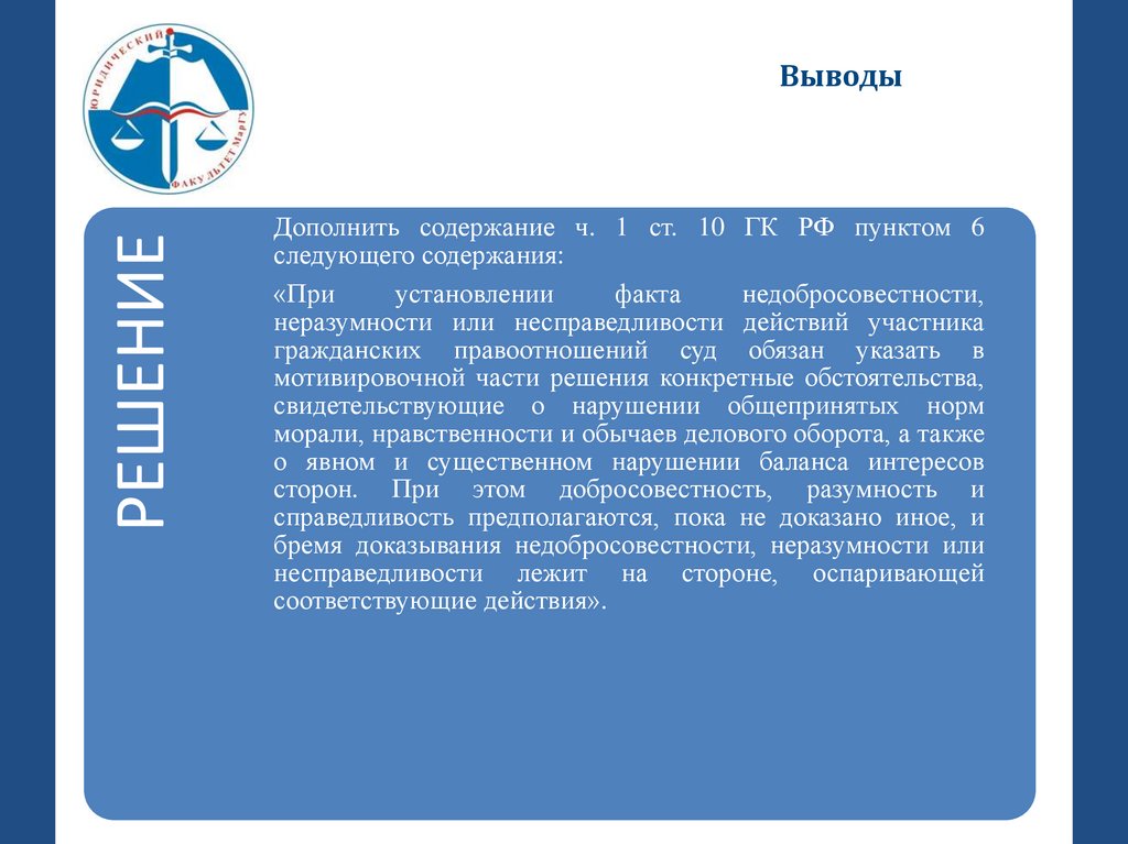 Дополнить содержание ч. 1 ст. 10 ГК РФ пунктом 6