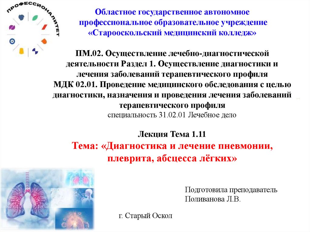 Диагностика и лечение пневмонии, плеврита, абсцесса лёгких. Тема 1.11