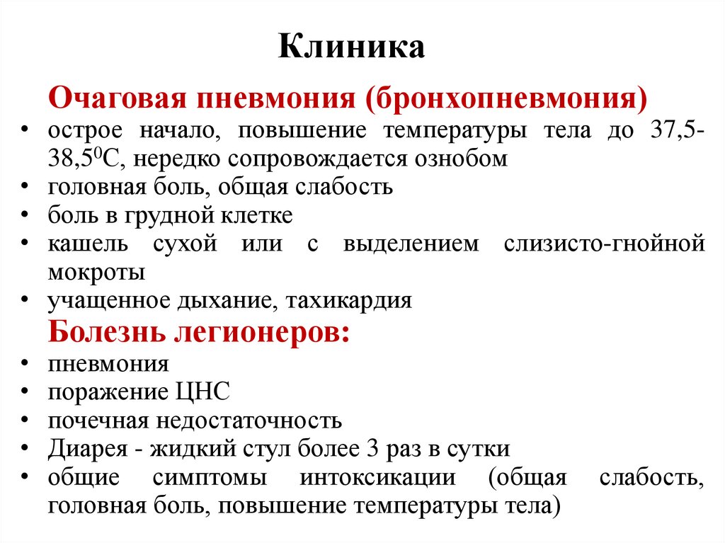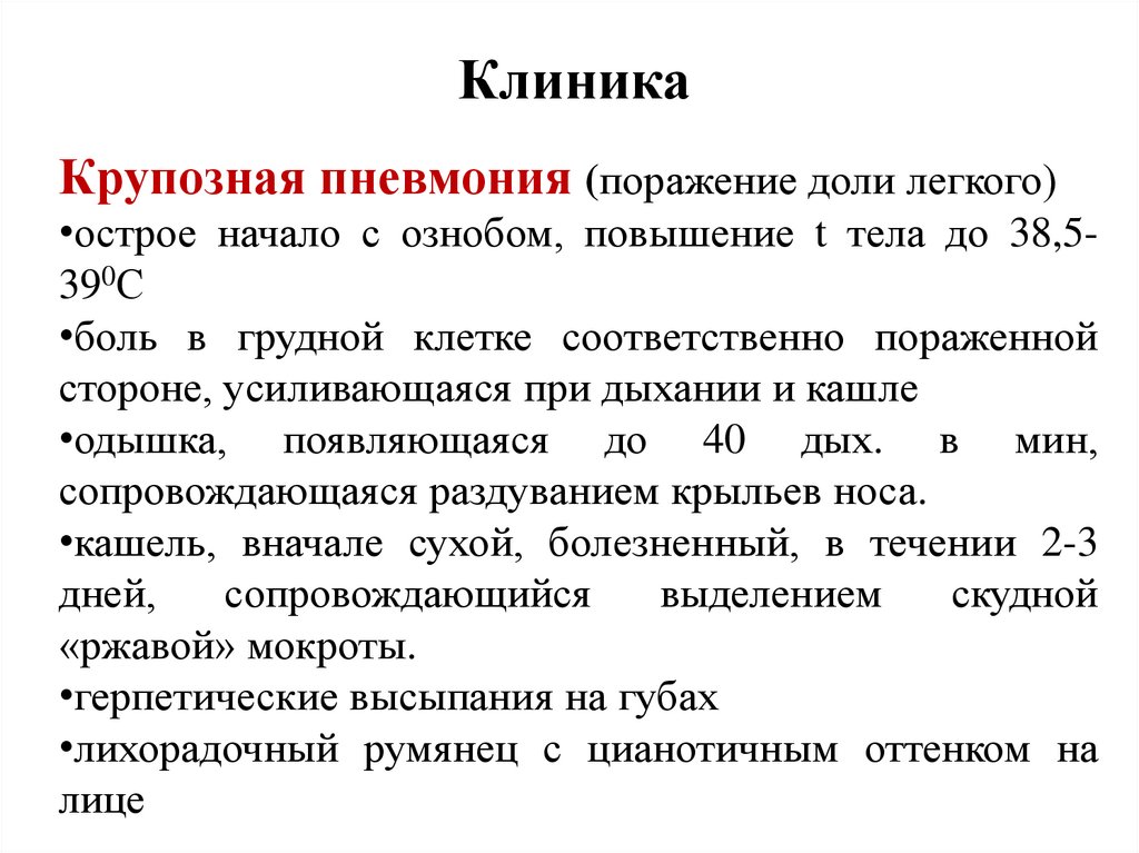 • Опишите клиническую картину пневмонии.
