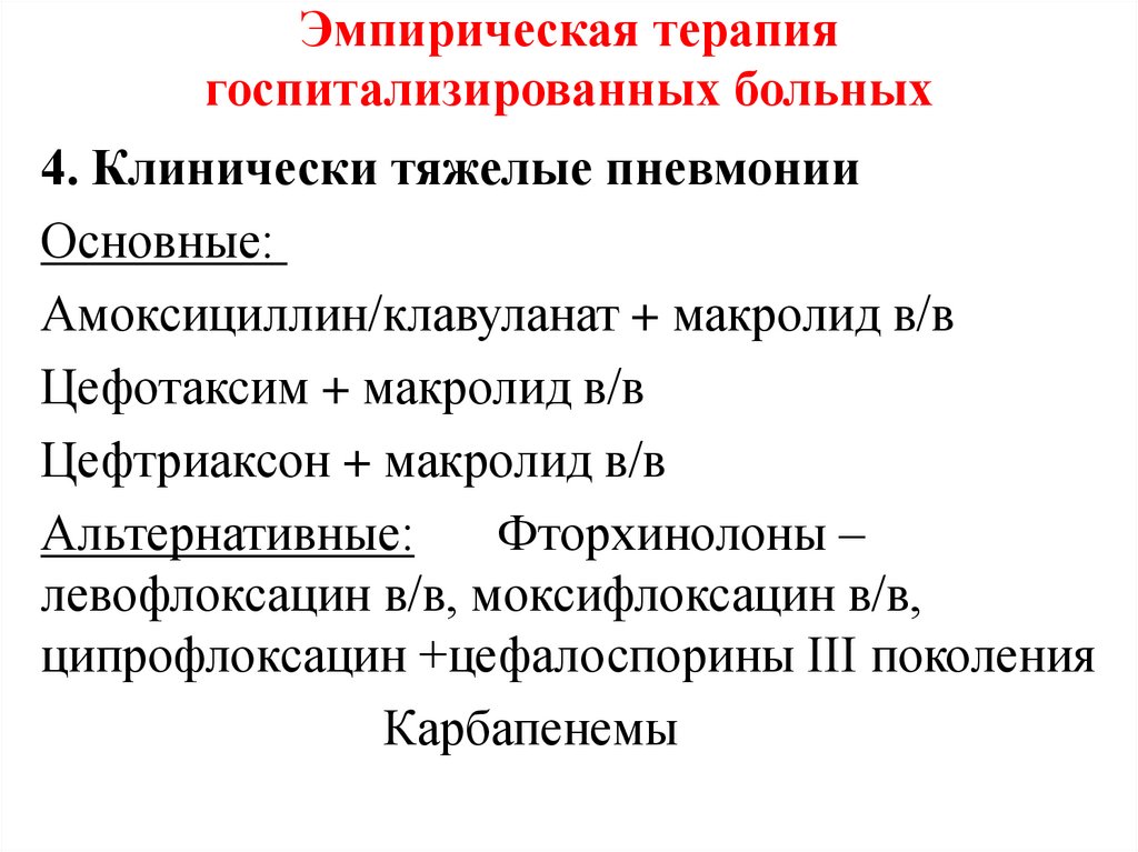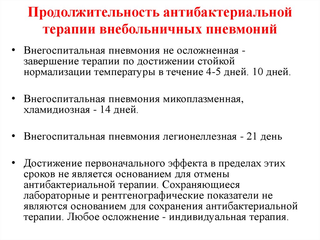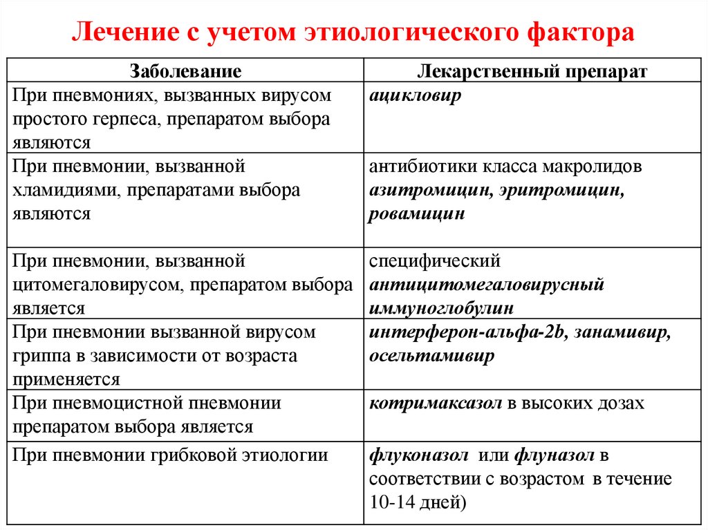 • Этиотропная терапия внебольничной