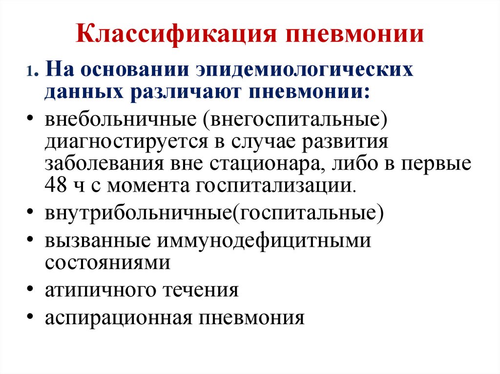 • Назовите основные причины пневмоний.• Назовите классификацию пневмоний?