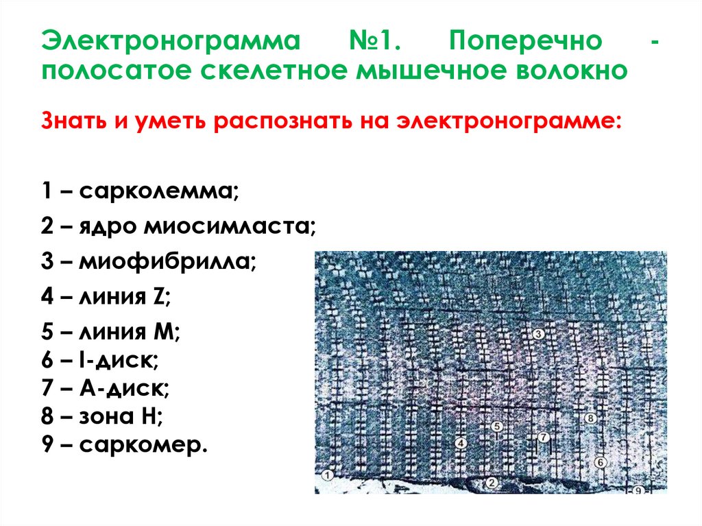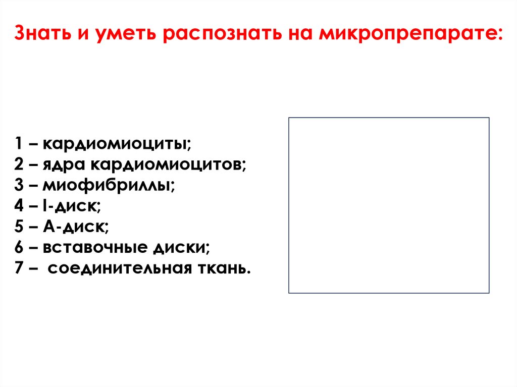 Знать и уметь распознать на микропрепарате:1 – кардиомиоциты;