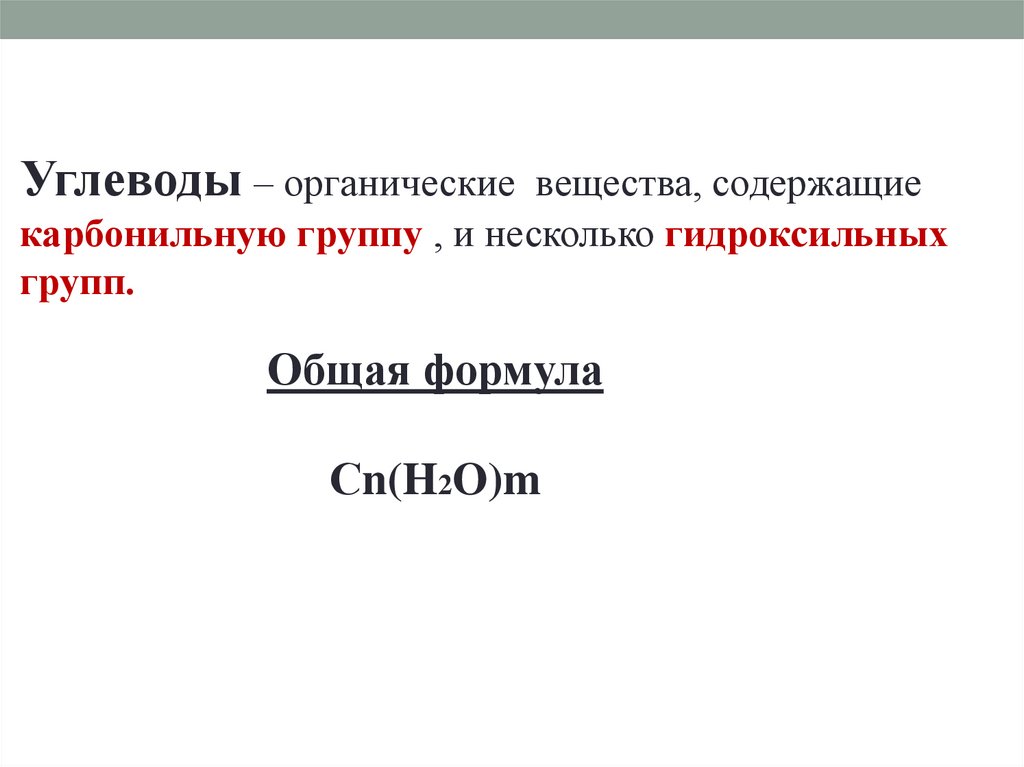 Углеводы – органические вещества, содержащиекарбонильную группу , и несколько гидроксильных