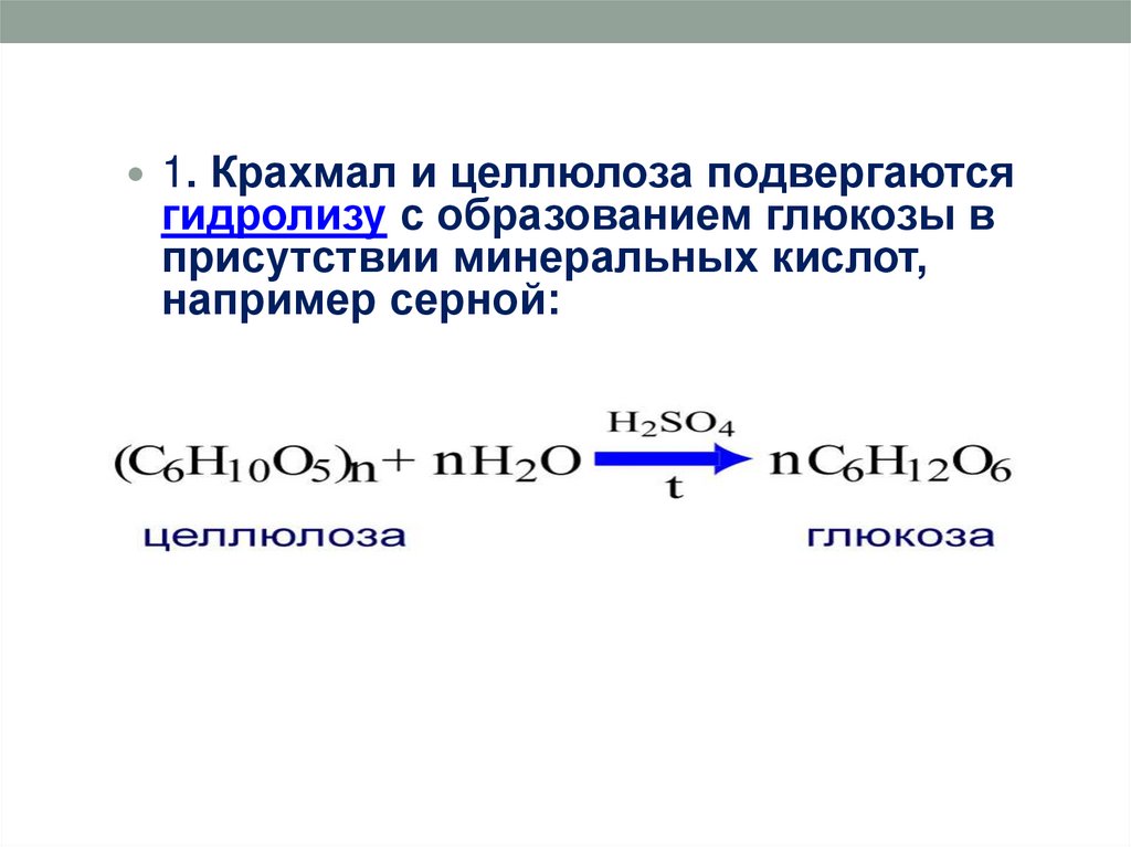 1. Крахмал и целлюлоза подвергаютсягидролизу с образованием глюкозы в