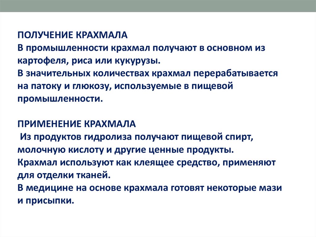 ПРИМЕНЕНИЕ КРАХМАЛА