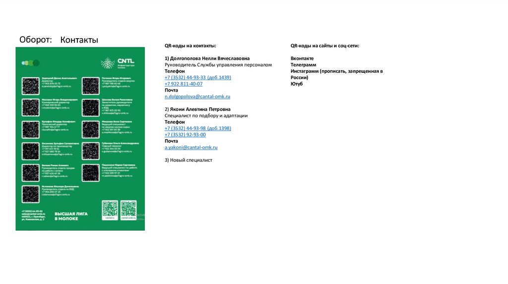 Оборот: КонтактыQR-коды на контакты: