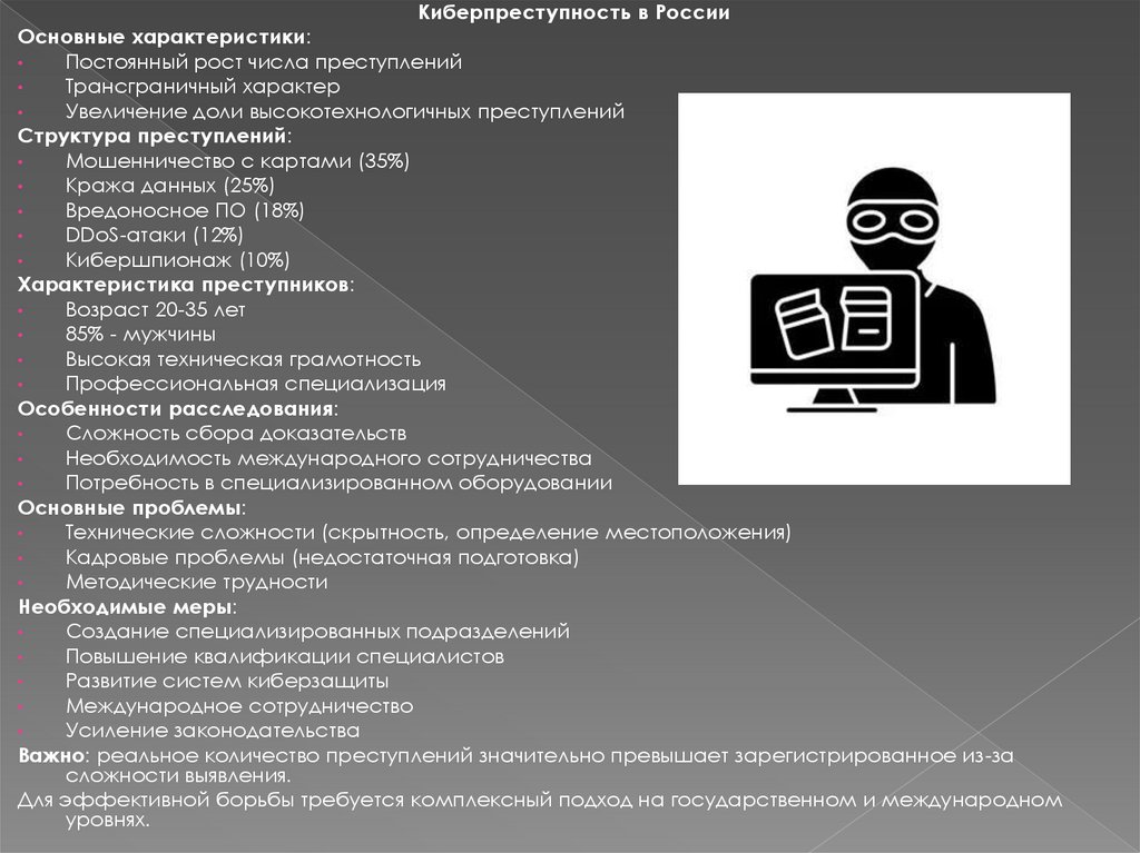 Киберпреступность в РоссииОсновные характеристики: