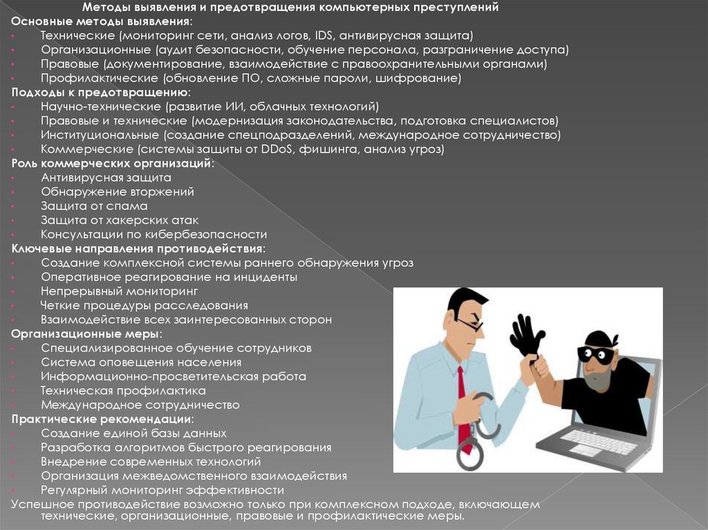 Методы выявления и предотвращения компьютерных преступленийОсновные методы выявления: