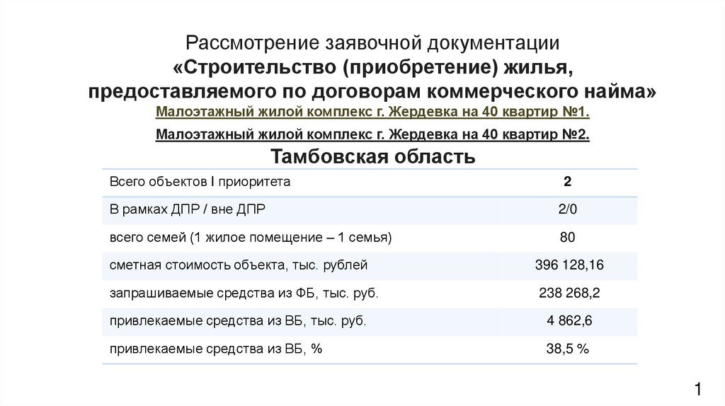 Рассмотрение заявочной документации«Строительство (приобретение) жилья,