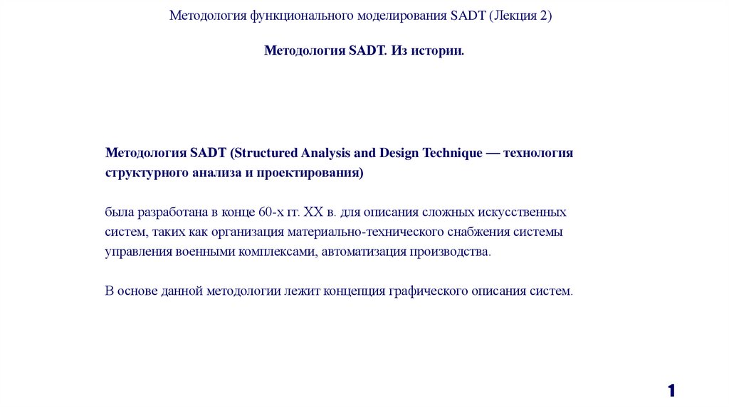 Методология функционального моделирования SADT (Лекция 2)Методология SADT. Из истории.