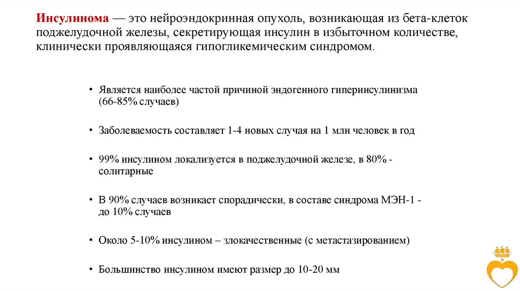 • Является наиболее частой причиной эндогенного гиперинсулинизма