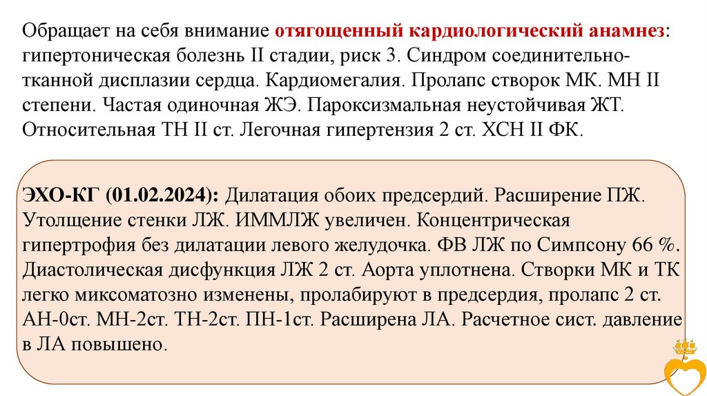обусловлен наличием у пациентки отягощенного анамнеза со стороны сердечнососудистой системы.
