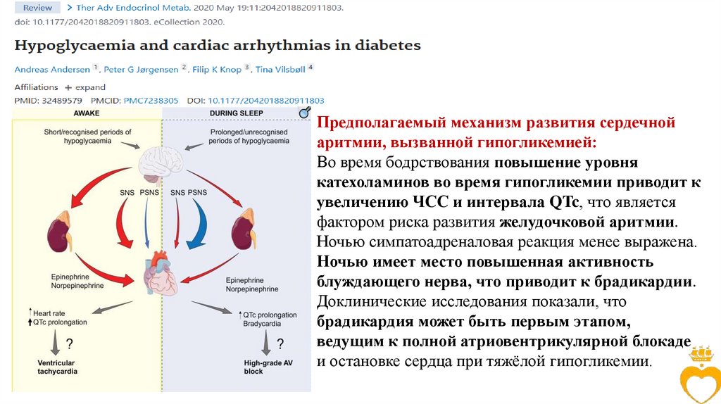 Предполагаемый механизм развития сердечнойаритмии, вызванной гипогликемией: