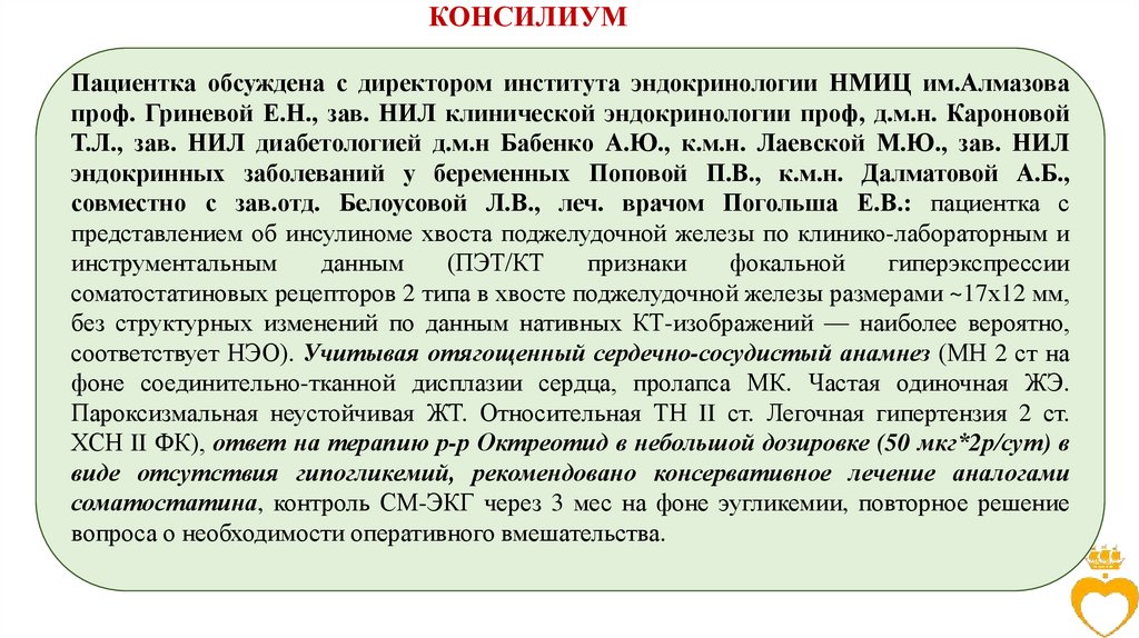 КОНСИЛИУМПациентка обсуждена с директором института эндокринологии НМИЦ им.Алмазова