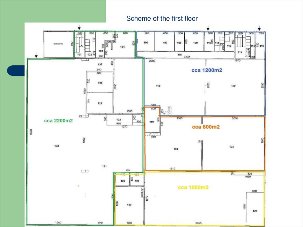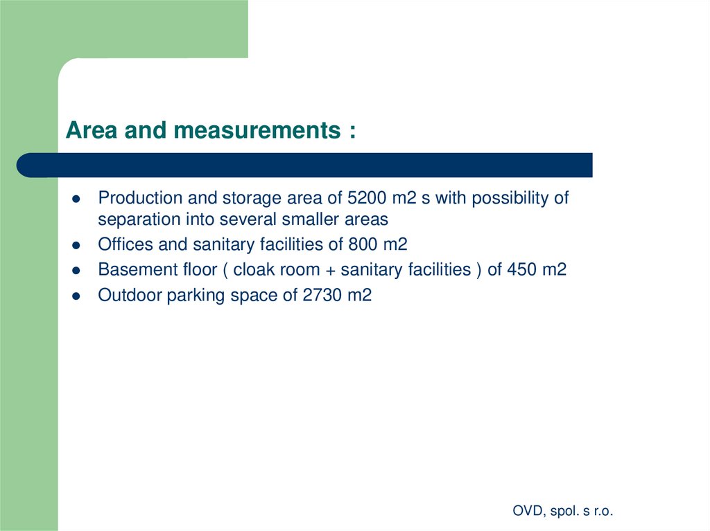 Production and storage area of 5200 m2 s with possibility ofseparation into several smaller areas