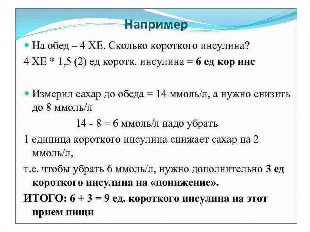 Доза на еду = УК х ХЕДоза инсулина перед приемом