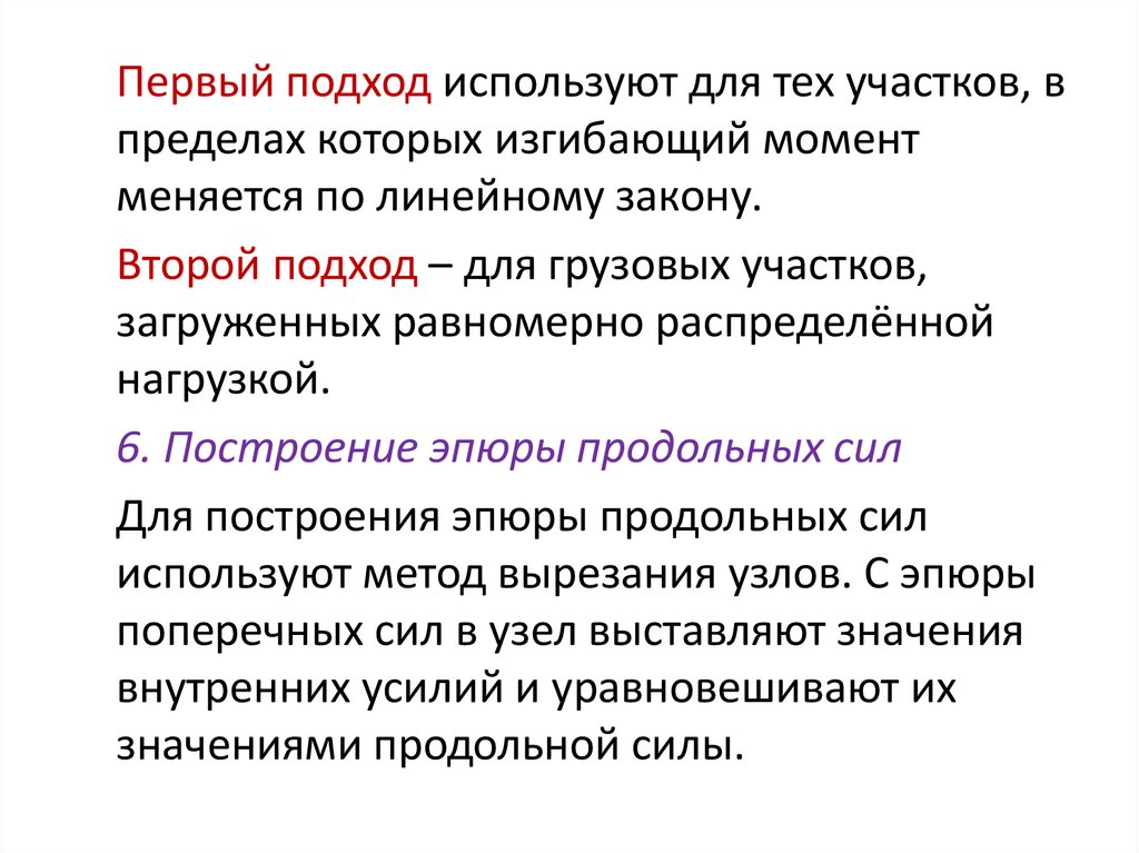 Первый подход используют для тех участков, впределах которых изгибающий момент