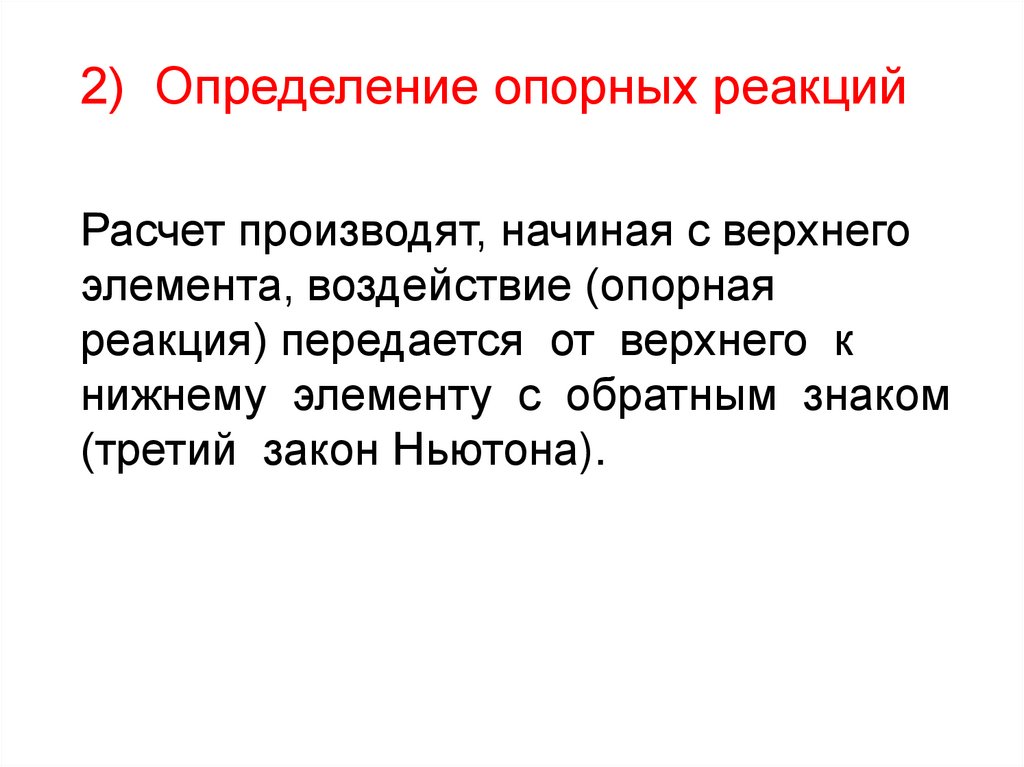 2) Определение опорных реакцийРасчет производят, начиная с верхнего
