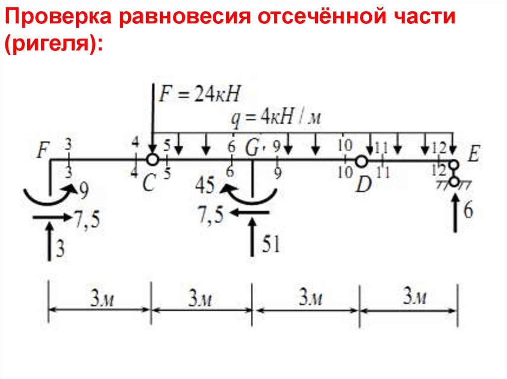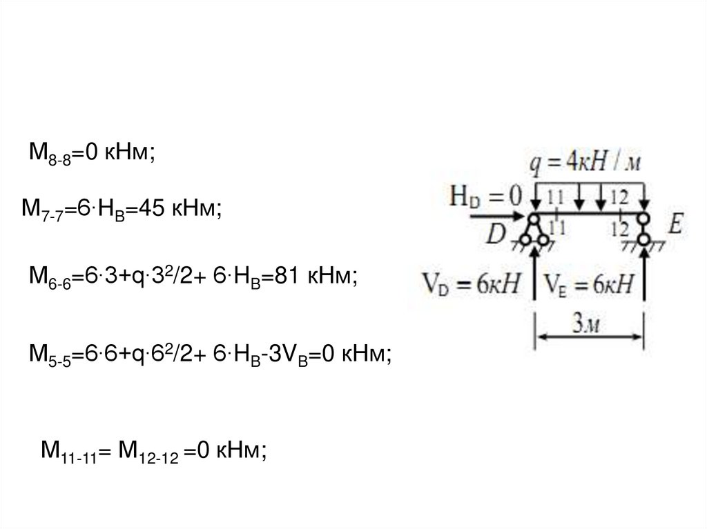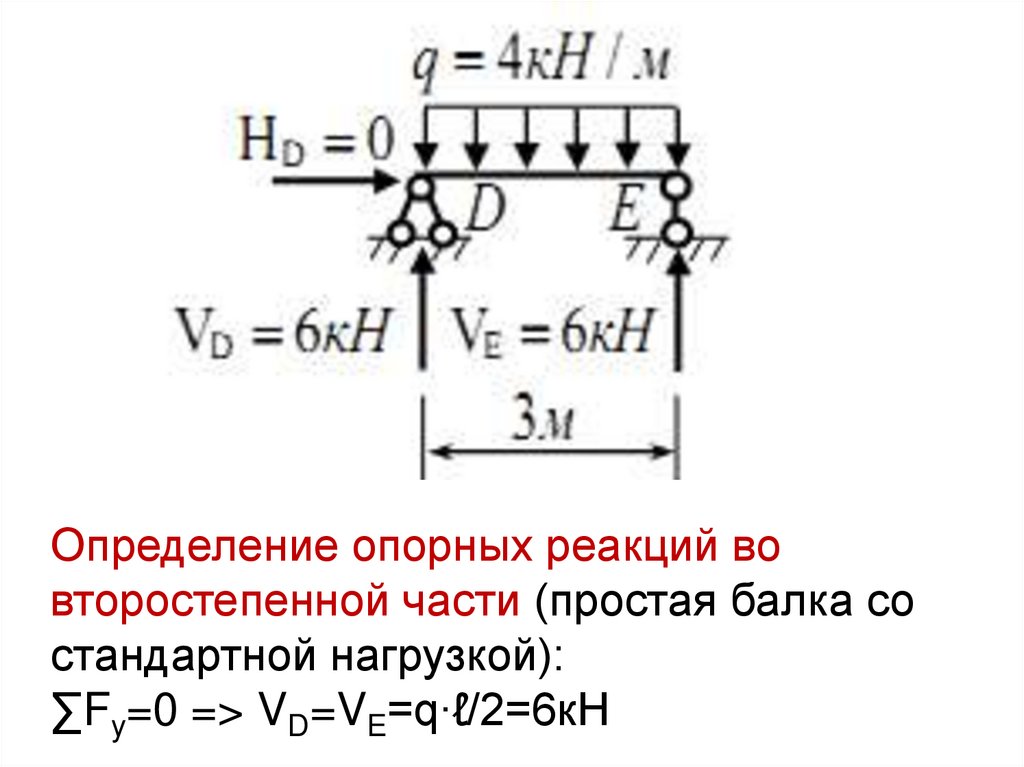 ∑Fy=0 => VD=VE=q∙ℓ/2=6кН