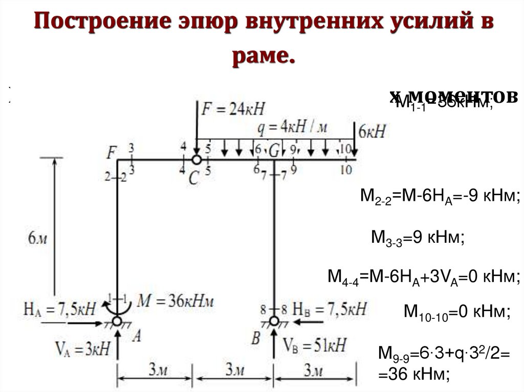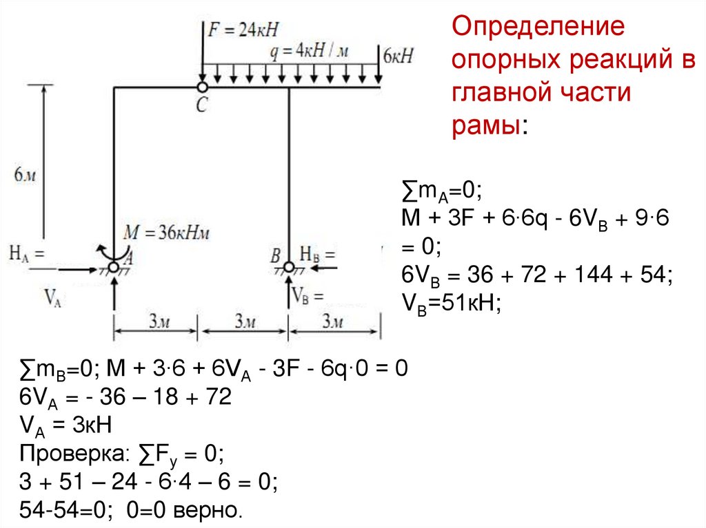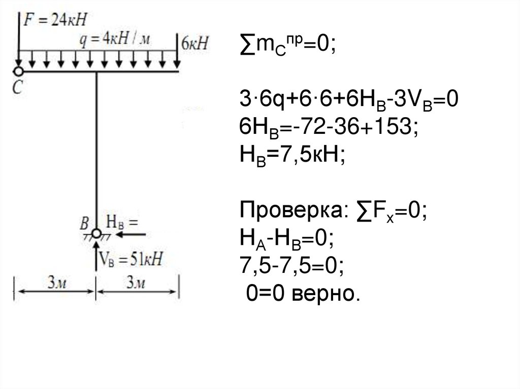 М5-5=6∙6+q∙62/2+ 6∙HB-3VB=0 кНм;