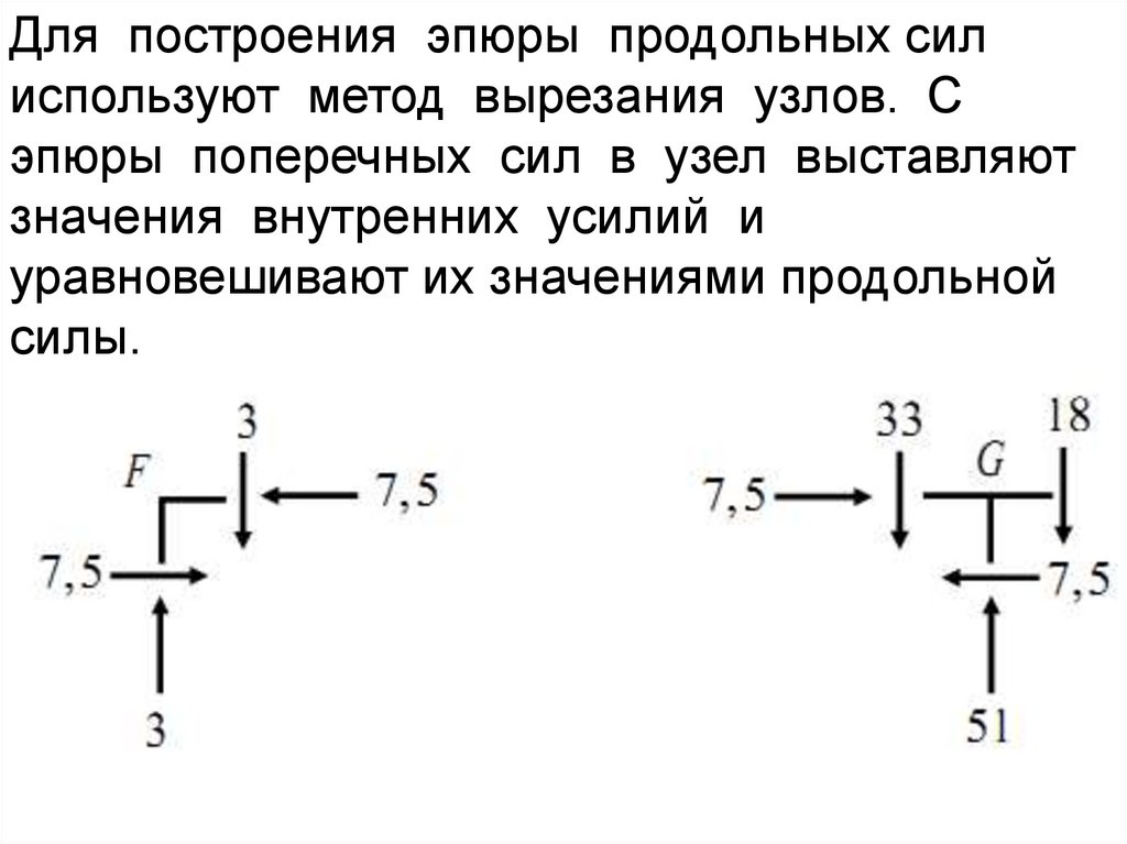 Для построения эпюры продольных силиспользуют метод вырезания узлов. С