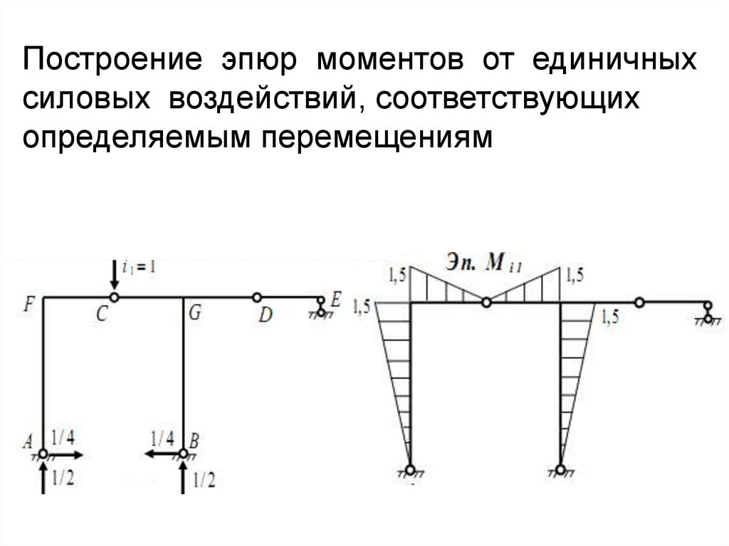 Построение эпюр моментов от единичныхсиловых воздействий, соответствующих