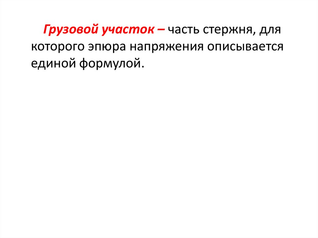 Грузовой участок – часть стержня, длякоторого эпюра напряжения описывается