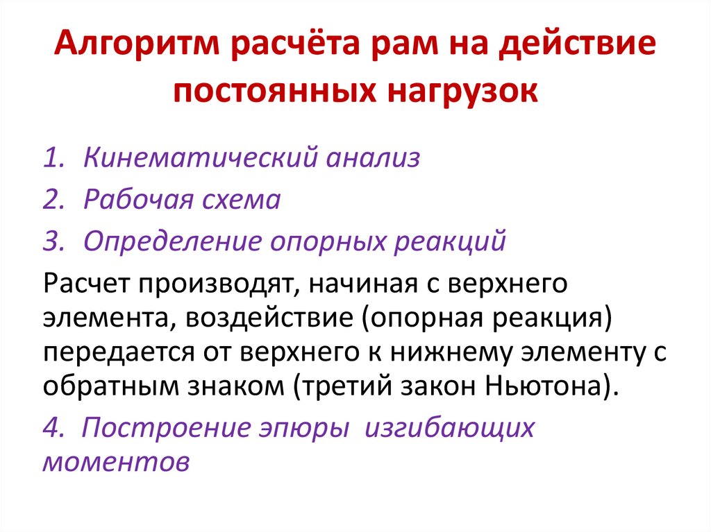 10. Алгоритм расчёта рам на действие постоянных нагрузок