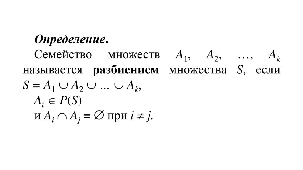 разбиением множества S, т.е. S = A1 A2 … Ak,